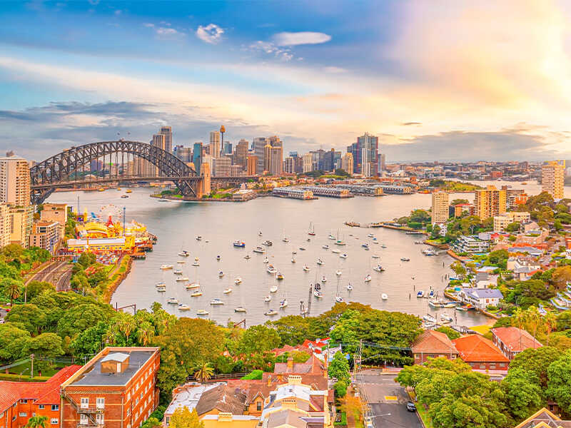 - Sydney: Thành phố biểu tượng của Úc với Nhà hát Opera và Cầu cảng Sydney nổi tiếng toàn cầu. Đừng bỏ lỡ cơ hội thả mình trên bãi biển Bondi hoặc khám phá các khu phố nghệ thuật tại Newtown.