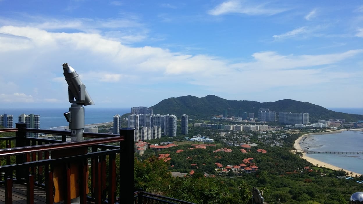 Du khách có thể tự lái xe hoặc đi xe điện dành cho khách du lịch đến giữa đồi. Thư thả tản bộ lên đỉnh đồi dọc con đường rợp bóng cây xanh mát. Từ đỉnh đồi, du khách có thể ngắm toàn cảnh thành phố Tam Á được bao quanh bởi những ngọn núi, ngọn đồi xanh ngắt, dòng sông Tam Á chảy vào biển.