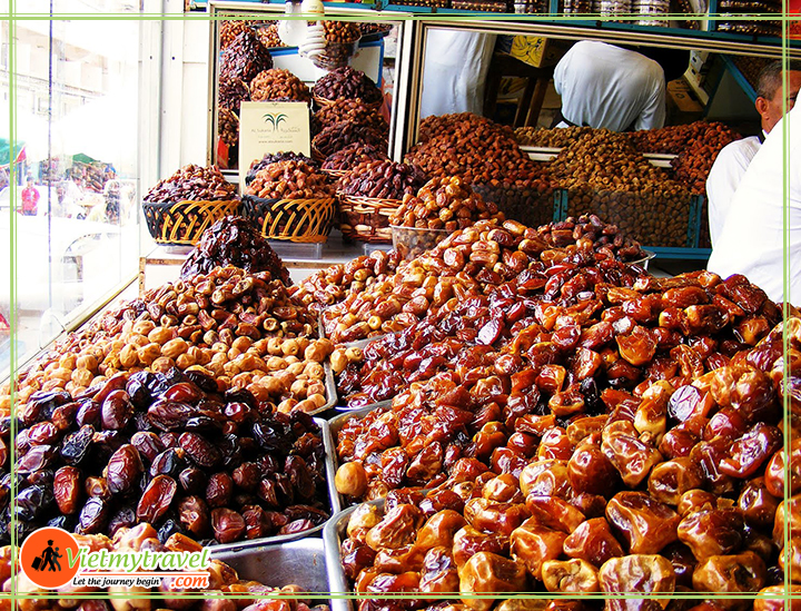 Buổi trưa: Dùng bữa trưa tại nhà hàng địa phương. Đi mua sắm tại Dates Market – khu chợ nông sản, nơi Emirates Palace – khách sạn hạng sang có khuôn viên trải dài gần 2 km được trang trí bên trong bằng những lá vàng và đá cẩm thạch quý. 14 nhà hàng cùng 1.002 chiếc đèn chùm, máy bán vàng tự động là vài trong số những điểm nhấn của lâu đài Emirates