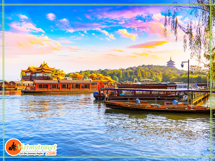 - Xe đưa quý khách ngồi thuyền thưởng ngoạn Tây Hồ – được xem là đẹp và nên thơ nhất trong hơn 36 hồ có cùng tên ở Trung Quốc, nhìn ngắm Quả sơn, Đoạn kiều, Trường kiều, Tô Đê Bạch Đê, Tam Đàn Ấn Nguyệt và Hoa Cảng gắn liền với những truyền thuyết về Lương Sơn Bá – Chúc Anh Đài, nhà thơ Lý Bạch, Thanh xà – Bạch xà.