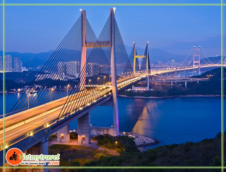 Đoàn đến Sân bay Chek Lap Kok – HongKong, quý khách làm thủ tục nhập cảnh và nhận hành lý cá nhân. Hướng dẫn viên địa phương chào đón đoàn và xe đưa đoàn di chuyển vào trung tâm Hongkong, đoàn đi qua cầu Thanh Mã – tên cầu được đặt theo tên hai hòn đảo cầu bắc ngang là Thanh Y và Mã Loan, được hoàn thành vào năm Hồng Kông được trao trả cho Trung Quốc 17-4-1997. Cầu Thanh Mã là cây cầu dây văng có nhịp lớn thứ 7 thế giới và cũng là cây cầu có nhịp dài nhất thế giới có 2 tầng cho cả xe ô tô và đường sắt lưu thông.
