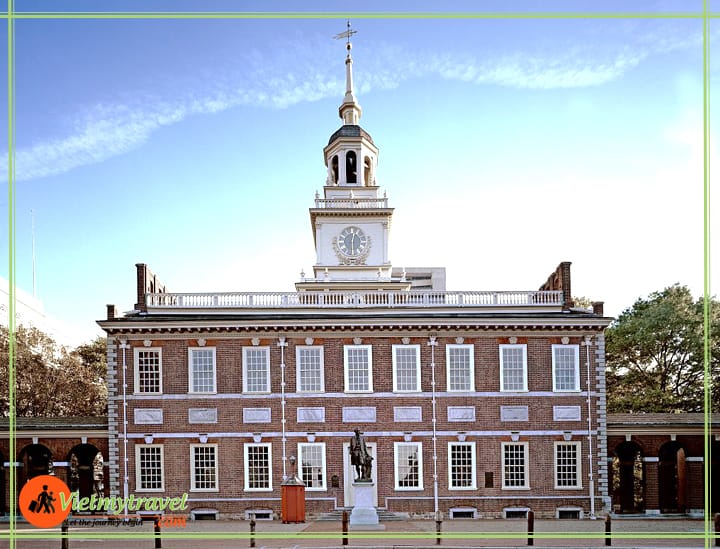 - Tham quan bên ngoài Dinh Độc Lập – Independence Hall: Hiện nay tòa nhà được bảo tồn nguyên vẹn, trước đây nơi này diễn ra cuộc họp thống nhất 13 bang của nước Mỹ và là nơi diễn ra rất nhiều sự kiện lịch sử quan trọng của buổi đầu khai sinh Hoa Kỳ. Nơi đây cũng chính là trụ sở của Lưỡng viện Quốc hội Mỹ thời kỳ non trẻ.