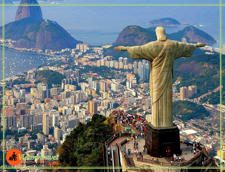 - Công viên quốc gia Tijuca, Đến công viên, đoàn đi tàu Cog-Wheel lên đỉnh núi Corcovado. Trong 20 phút hành trình, đoàn có dịp ngắm toàn cảnh của Tijuca. Quý khách có dịp tiệm cận với các sinh vật nhiệt đới đặc trưng, đoàn cũng đồng thời chiêm ngưỡng toàn cảnh những bãi biển tuyệt đẹp và thành phố Rio De Janeiro. Khi đến đỉnh núi Corcovado, đoàn leo bộ lên trên tầm cao nơi có tượng Chúa Cứu Thế giang tay ban phước lành cho Rio De Janeiro, biểu tượng nổi tiếng bậc nhất của Rio De Janeiro và được công nhận là một trong bảy kỳ quan thế giới.