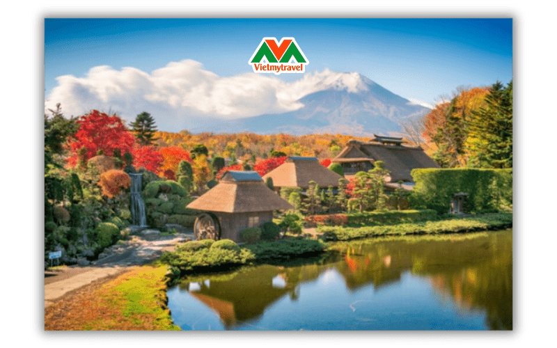 - Làng cổ Oshino Hakkai – ngôi làng vẫn còn giữ được nét văn hóa xưa, yên tĩnh và thanh bình nằm cạnh dưới chân núi Phú Sĩ. Du khách ghé thăm ngôi làng cổ này sẽ không khỏi ấn tượng bởi 8 hồ nước bao quanh làng. Đặc biệt, phần đáy của hồ có cấu tạo chủ yếu là thạch nham do quá trình kiến tạo địa chất và lấy nguồn nước từ băng tuyết chảy từ trên đỉnh của núi Phú Sĩ. Quần thể Oshino Hakkai được quy hoạch hoàn hảo, toàn bộ vẻ đẹp của ngôi làng dịu dàng tỏa ra từ những mảnh vườn trồng rau, ngô, chè xanh non cho đến luống hoa cải vàng ruộm, khu vườn bonsai tuyệt tác bao quanh làng.