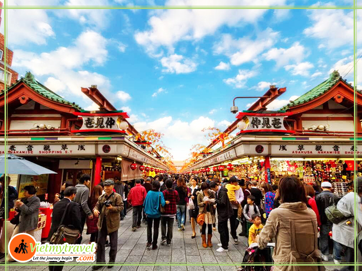 - Tự do mua sắm tại khu phố Nakamise – một trong những khu phố mua sắm cổ nhất Nhật Bản có từ thời Edo với khoảng 90 hàng quán nối tiếp nhau hai bên đường.