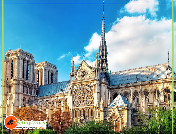 - Nhà thờ Đức Bà Notre Dame – biểu tượng của lối kiến trúc “Gothic” thịnh hành ở Châu Âu thời trung cổ. Nơi đây từng chứng kiến rất nhiều sự kiện lịch sự trọng đại của nước Pháp. Với những người yêu văn học, Notre Dame biết đến qua quyển tiểu thuyết kinh điển của nhà văn thiên tài Victor Hugo – “Thằng gù nhà thờ Đức Bà”.