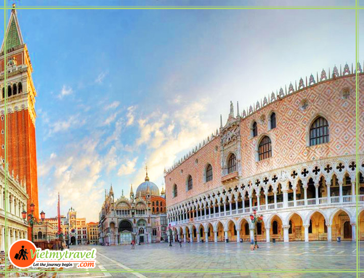 - Nhà thờ thánh San Marco, một kiến trúc Byzantine tuyệt đẹp. Du khách sẽ có cơ hội dạo bước trên cây cầu Than Thở huyền thoại. Cây cầu kết nối các nhà tù cũ đến phòng thẩm vấn Cung điện Doge này xuất hiện rất nhiều trên bưu thiếp và các tranh ảnh về Venice.
