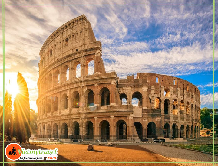 - Đấu trường Colosseum: biểu tượng của Đế Chế La Mã. Và là một trong những mẫu kiến trúc La Mã đẹp nhất còn lại. Đấu trường được dùng làm nơi cho các đấu sĩ và nộ lệ chiến đấu.