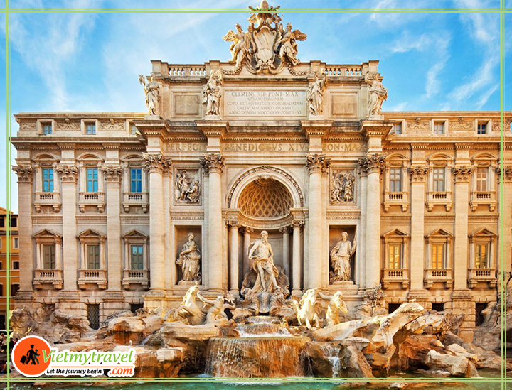 - Đài phun nước De Trevi, một kiệt tác nghệ thuật Baroque. Nơi du khách ném những đồng xu vào để cầu nguyện.