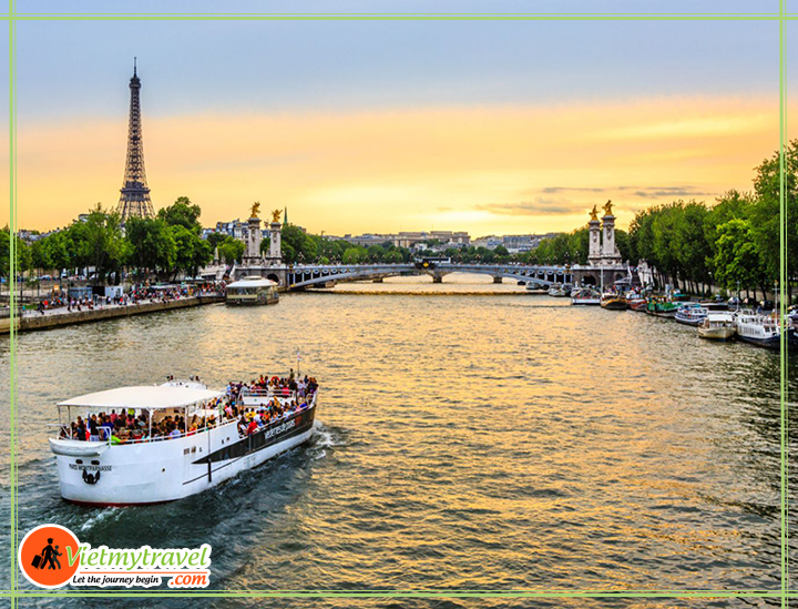 - Sau buổi chiều tham quan khám phá văn hóa lịch sử Pháp trung cổ. Quý khách tham gia tour du thuyền dạo chơi trên sông Seine – ngắm hoàng hôn buông nhẹ trên dòng sông êm đềm và lãng mãn nhất Thủ đô Paris.