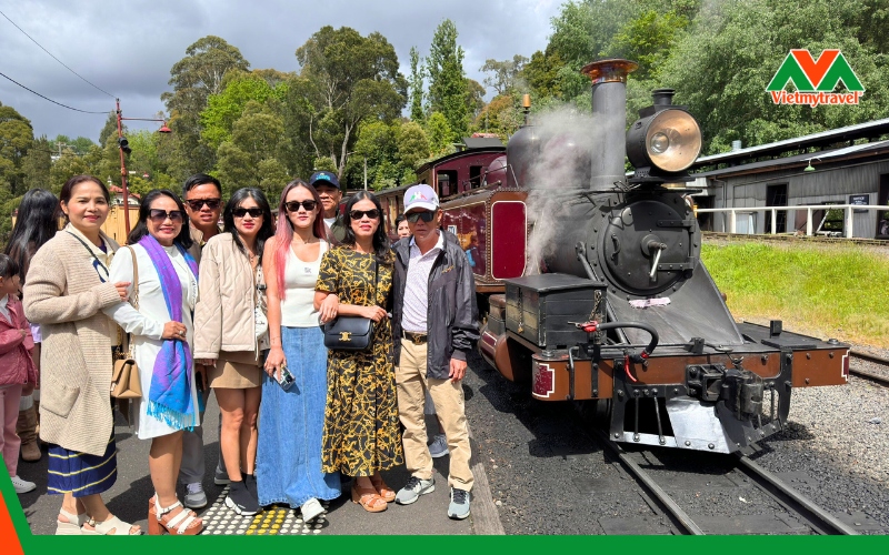 - Quý khách sẽ được trải nghiệm Xe lửa hơi nước Puffing Billy. Hành trình trên tàu Puffing Billy sẽ đưa bạn đi qua dãy Dandenong xanh mướt đẹp huyền diệu của nước Úc.