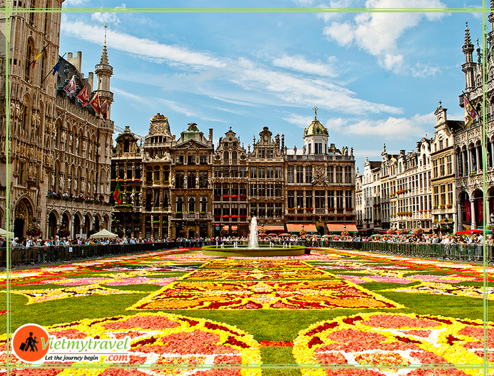 - Quảng trường Grand Place – khu phố cổ đẹp nhất Brussels được UNESCO công nhận là di sản văn hóa Thế giới, gồm tòa thị chính, nhà Maison du Duc (Nhà của công tước),..