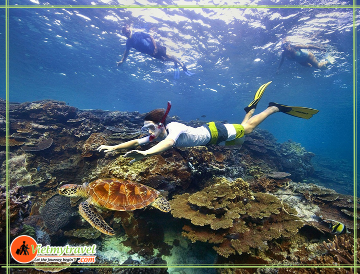 - Lặn biển ngắm san hô, Cá biển, Rùa biển: Du lịch Maldives nổi tiếng bởi cảnh quan thiên nhiên vô cùng thân thiện, lặn biển ngắm hệ sinh thái động, thực vật phong phú là một trong những hoạt động được nhiều người yêu thích.