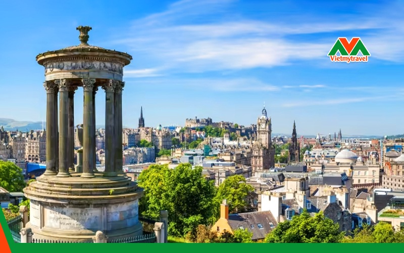 - Quý khách ngắm toàn cảnh Edinburgh từ đỉnh đồi Calton, ngọn đồi ở trung tâm Edinburgh, được UNESCO công nhận là Di sản Thế giới. Trên đồi Calton có một số công trình quan trọng của thành phố như: Đài quan sát Thành phố, Đài tưởng niệm Quốc gia, Đài tưởng niệm các vĩ nhân Nelson, Dugald Stewart, Robert Burns và Trường Trung học Hoàng gia cũ.