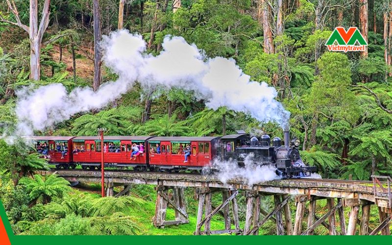 - Puffing Billy – Xe lửa hơi nước: là một chuyến tàu hơi nước, với các toa xe cổ điển và được kéo bởi một đầu máy hơi nước.