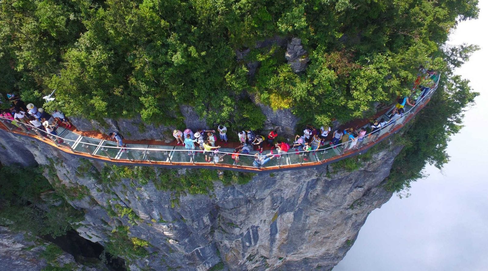 - Đài Lăng Tiêu, Thiên Giới Phật Quốc. Quý khách men theo “Con Đường Vách Đá” – một con đường nhỏ cạnh vách đá cao ngất của đỉnh Thiên Môn dài khoảng 80m, dạo buớc trên Con Đường Thủy Tinh một đoạn được lát bằng kính. Tại đây, quý khách có thể ngắm nhìn cảnh núi non trùng trùng điệp điệp ngay dưới chân ở độ cao 1,400m, cảm nhận cảm giác như đi trên mây. Đi thang máy xuyên lòng núi một kiệt tác của nhân loại.